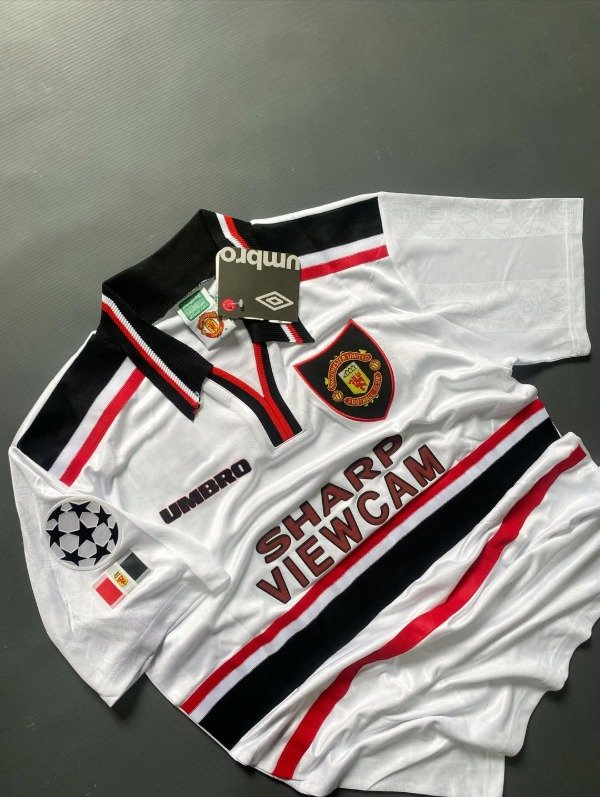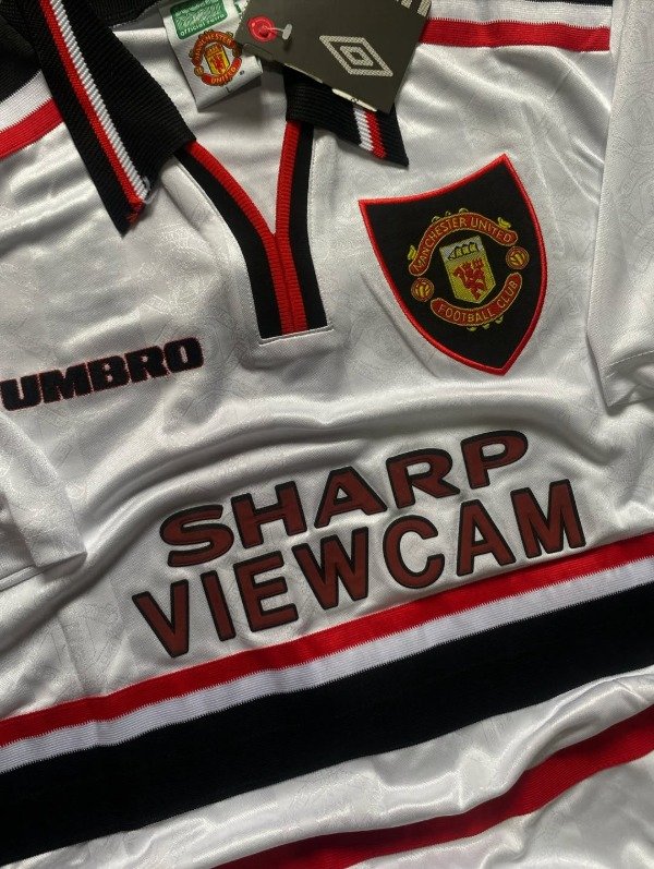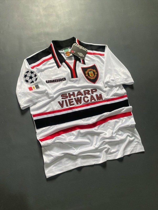 Diseño clásico vintage con el rojo intenso y detalles negros y blancos que marcaron el final de los noventa. Aquel equipo, dirigido por Sir Alex Ferguson, estaba construyendo la base del histórico triplete que llegaría un año después. Figuras como David Beckham, Paul Scholes, Ryan Giggs, Roy Keane y Andy Cole convivían con la jerarquía de Peter Schmeichel bajo los tres palos. Aunque en la temporada 97/98 los Red Devils cedieron la liga ante el Arsenal de Wenger, el plantel mostró un fútbol dinámico y ofensivo que alimentaba la ilusión de Old Trafford. Esta camiseta es hoy un símbolo de transición hacia la gloria, asociada a una generación de leyendas que pronto escribiría una de las páginas más grandes de la historia del club.