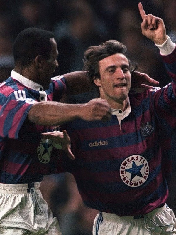 El Newcastle 1998 era un rock and roll vestido de blanco y negro. Venían de los ecos del gran Keegan y la locura del “Entertainers”, pero ya con un aire más crudo, más de pelea. Shearer seguía siendo el alma —un tanque con corazón geordie—, y Ginola, el artista que convertía cualquier jugada en un show. No ganaron títulos, pero meterse otra vez en Wembley y representar esa pasión desbordada del norte fue su consagración simbólica. Era un club que no necesitaba trofeos para ser leyenda. Talle L - Medidas: largo 75, ancho 52