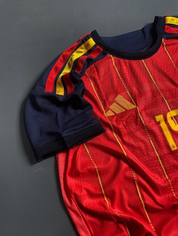 Camiseta titular selección de España Mundial 2026 📦 La Selección España 2026 se ilusiona con una nueva era liderada por Lamine Yamal, la joya que devolvió el desequilibrio y la fantasía al fútbol de la Roja. A su alrededor crece una generación de talento con Pedri, Gavi y Nico Williams sosteniendo el estilo de posesión, presión y técnica que marcó su historia. La camiseta roja vuelve a cargar con la herencia del 2010 y con la ambición de competir siempre en lo más alto. El recambio le dio frescura sin perder el ADN del toque y el control del juego. Rumbo al 2026, España va por otra etapa dorada y por reafirmar su lugar entre las potencias del mundo.