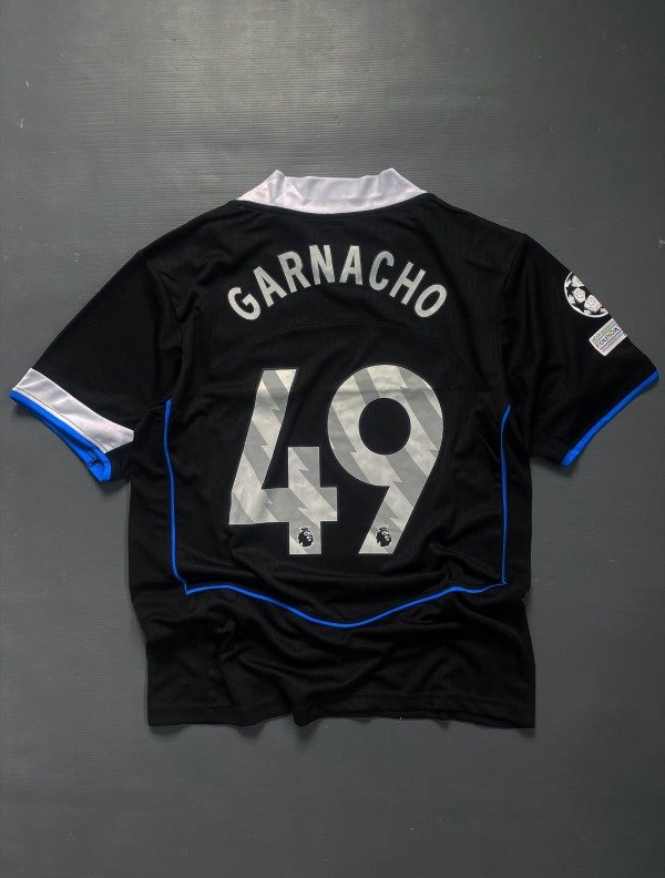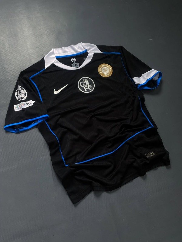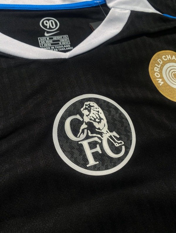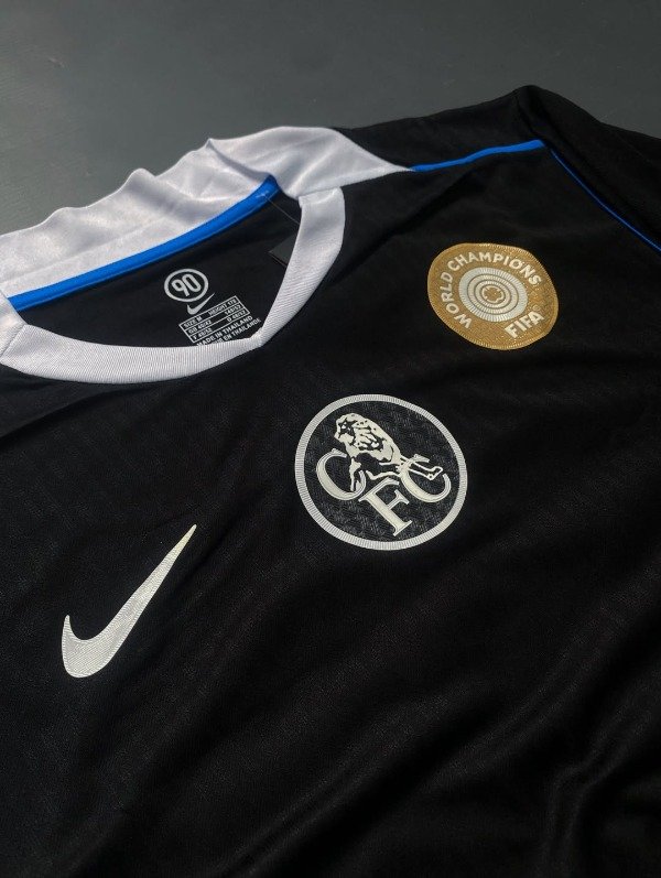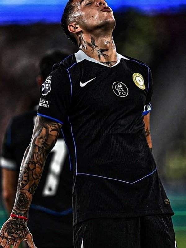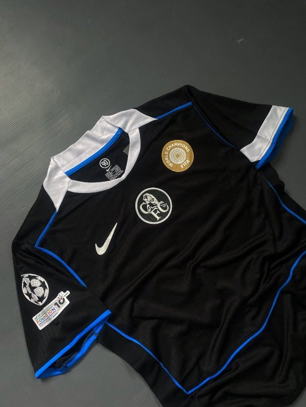 La tercera camiseta del Chelsea 2025-26 destaca al actual campeón del mundo a nivel clubes, luciendo un fondo negro con detalles en azul y plata que refleja la fuerza y elegancia del equipo londinense. Inspirada en el estilo Total 90 de Nike, combina nostalgia y modernidad mientras enaltece la identidad de un Chelsea que mezcla juventud y experiencia, liderado por figuras como Enzo Fernández. Los bordados del escudo y el swoosh refuerzan la calidad premium, mientras que los sponsors oficiales se integran sin restar protagonismo al diseño. Esta camiseta simboliza la actualidad de un club que domina tanto en Inglaterra como internacionalmente, destacando su estilo, talento y proyección. En conjunto, es una prenda que conecta a los fanáticos con la historia reciente y la ambición futura del Chelsea, convirtiéndose en un ícono dentro y fuera de la cancha.