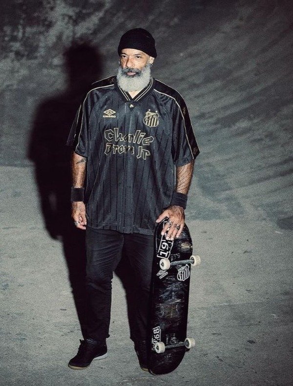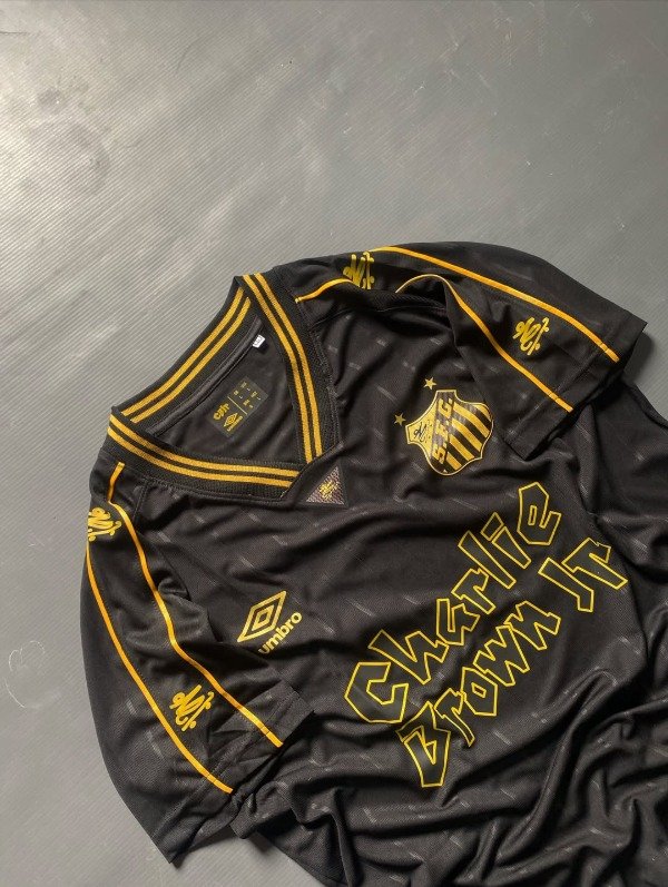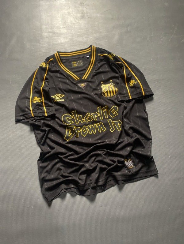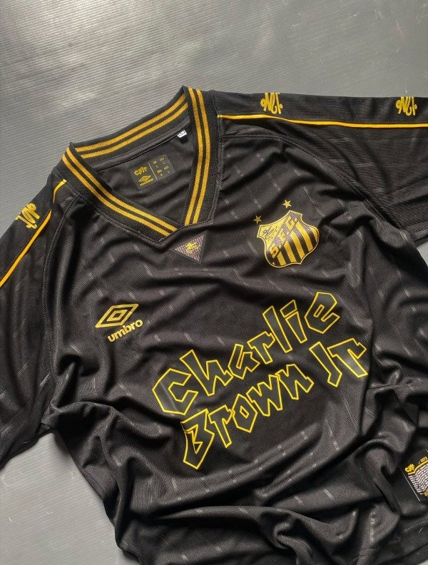 el Santos Futebol Clube y la banda Charlie Brown Jr se unen para lanzar una camiseta en edición limitada para celebrar los 32 años de carrera del grupo musical. La prenda, presenta un diseño único que combina los elementos icónicos de las tres marcas. El logo de Charlie Brown Jr. aparece destacado en la parte frontal de la camiseta, en referencia al álbum “As Outras Praias”. Incluye un dibujo de un skater, representando la cultura urbana y el estilo de vida de la banda.