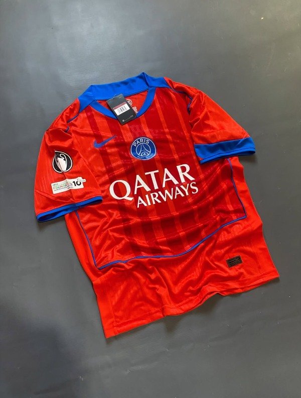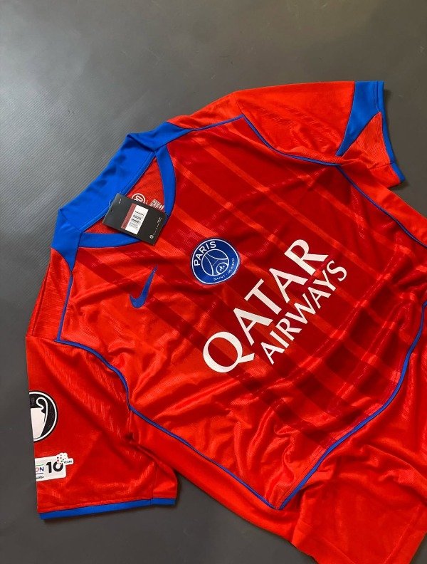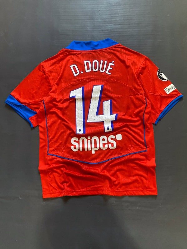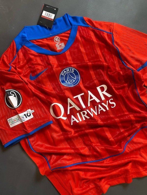 Esta casaca presenta un color único, rojo intenso inspirado en la línea Total 90, que combina nostalgia y modernidad, mientras que los detalles en Hyper Royal aportan contraste y estilo. Confeccionada por Nike Dri-FIT ADV, ofrece un ajuste ergonómico y paneles de ventilación que garantizan comodidad y rendimiento dentro y fuera de la cancha. Además, integra los sponsors oficiales de manera armoniosa, reforzando su identidad sin sobrecargar el diseño, y permite la personalización con jugadores como Désiré Doué (#14), lo que la hace muy atractiva para seguidores jóvenes y coleccionistas. El escudo y el swoosh bordados resaltan la calidad premium de la prenda, mientras que su silueta moderna mantiene la elegancia clásica de la casa parisina. En conjunto, es una camiseta que une historia, innovación y proyección de talentos, convirtiéndose en un ícono visual tanto en redes sociales como en la cancha.