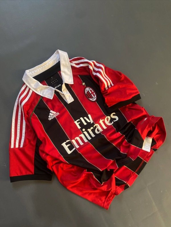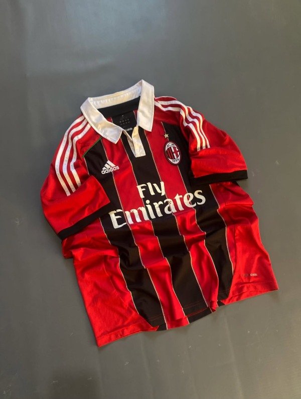 El Milan de aquella época vivió una temporada de transición, destacándose por clasificar a la Champions League tras una gran segunda mitad de la Serie A. Bajo la dirección de Massimiliano Allegri, el equipo remontó posiciones con figuras jóvenes como Stephan El Shaarawy y el impacto inmediato de Mario Balotelli, quien llegó en enero y fue clave con sus goles. También fue el año de despedida de leyendas como Massimo Ambrosini. La camiseta titular mantenía el icónico rojo y negro con bastones más finos y detalles dorados, reflejando elegancia y tradición. Fue un año de reconstrucción, con destellos de talento y esperanza para el futuro rossonero. La camiseta cuenta con dos mini enganches en la parte de atrás, Sacando eso y los sponsors, esta impecable.