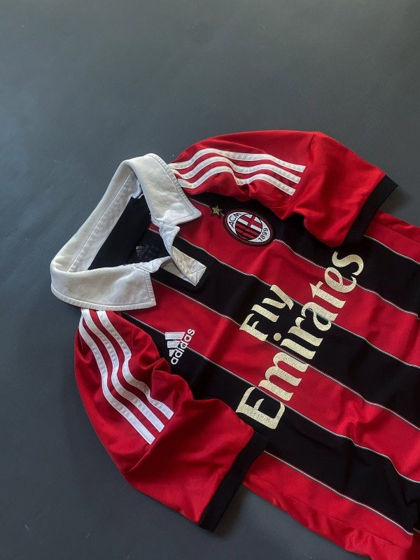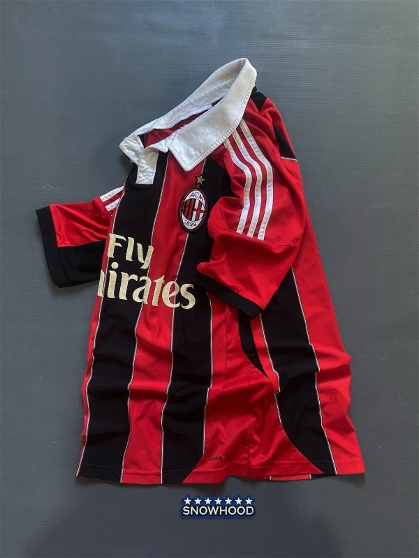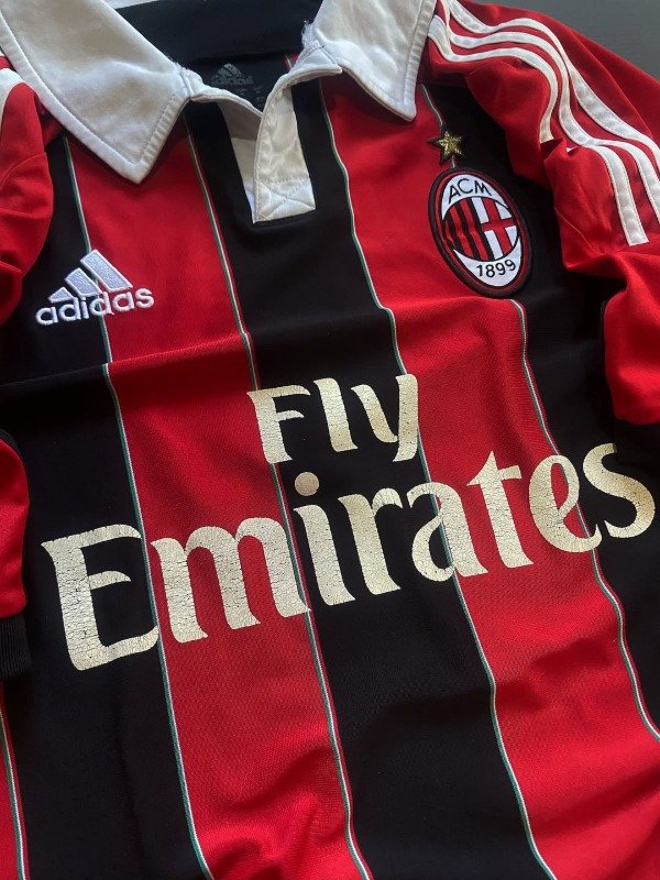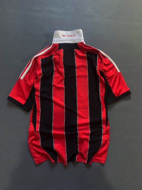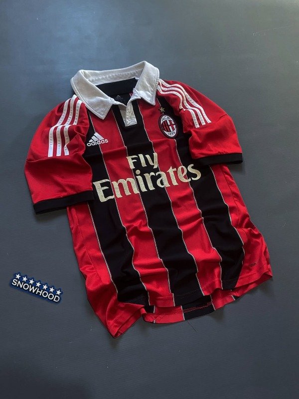 El Milan 2012/2013 vivió una temporada de transición, destacándose por clasificar a la Champions League tras una gran segunda mitad de la Serie A. Bajo la dirección de Massimiliano Allegri, el equipo remontó posiciones con figuras jóvenes como Stephan El Shaarawy y el impacto inmediato de Mario Balotelli, quien llegó en enero y fue clave con sus goles. También fue el año de despedida de leyendas como Massimo Ambrosini. La camiseta titular mantenía el icónico rojo y negro con bastones más finos y detalles dorados, reflejando elegancia y tradición. Fue un año de reconstrucción, con destellos de talento y esperanza para el futuro rossonero.